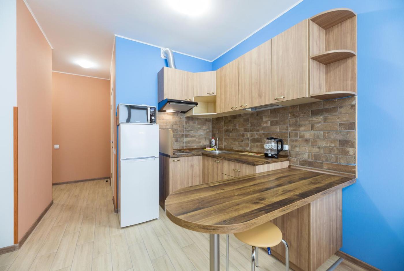 Studio Apartment. Boasting a private entrance, this air-conditioned apartment comes with 1 bedroom and 1 bathroom with a hairdryer. Guests can make meals in the kitchenette that features a stovetop, a refrigerator, a microwave and a tea and coffee maker. The apartment features a washing machine, a dining area, a wardrobe, a sofa and a flat-screen TV. The unit has 1 bed. ;