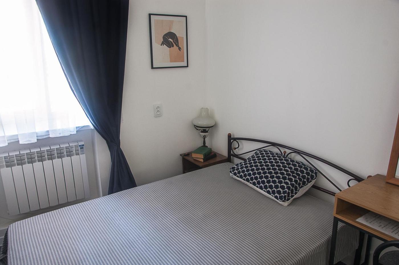 One-Bedroom Apartment. This apartment is comprised of 1 living room, 1 separate bedroom and 1 bathroom with a bath and a shower. Guests can make meals in the kitchen that comes with a stovetop, a refrigerator, kitchenware and a microwave. The apartment features a tea and coffee maker, a wardrobe, parquet floors as well as a balcony with ancourtyard view. The unit offers 1 bed.